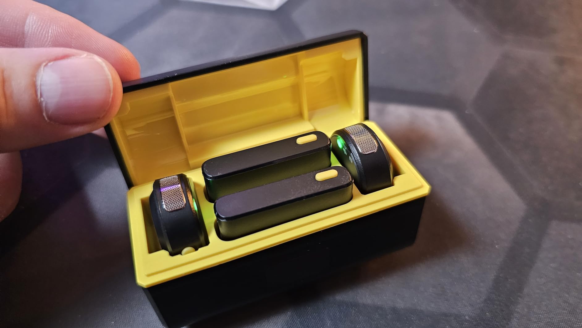 Non mi aspettavo che questo piccolo set mi sarebbe piaciuto così tanto. Anche se registro video da solo, è bello sapere di avere due microfoni che posso usare. Inoltre, i microfoni sono magnetici, quindi puoi collegarli ovunque. A volte creo contenuti ASMR e in questo modo posso semplicemente attaccarli a qualsiasi cosa sia più vicina alla mia fotocamera. Pensavo che la cancellazione del rumore sarebbe stata inutile, ma ho testato il suono con e senza cancellazione del rumore e WOW, in realtà fa la differenza. Viene fornito anche con clip e quegli oggetti soffici che puoi mettere sul microfono per ammorbidire il suono.