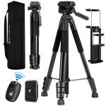 K&F Concept Treppiede per fotocamera, 68" Treppiedi per DSLR da viaggio portatile leggero per esterni per fotocamera, telefono, registrazione video, treppiede, clip per cellulare per smartphone, streaming live, vlog S254A3+BV01