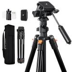 196cm Treppiede Leggero in Alluminio per Fotografia e Trasmissioni in Diretta + Testa Video+ Clip per Telefono, Carico 3kg, Peso 1,26kg - O234A5+BV01