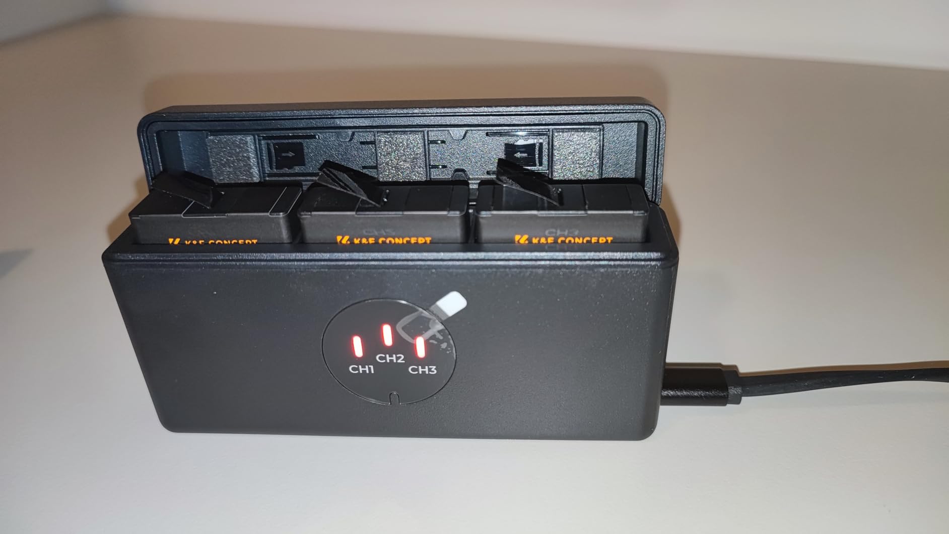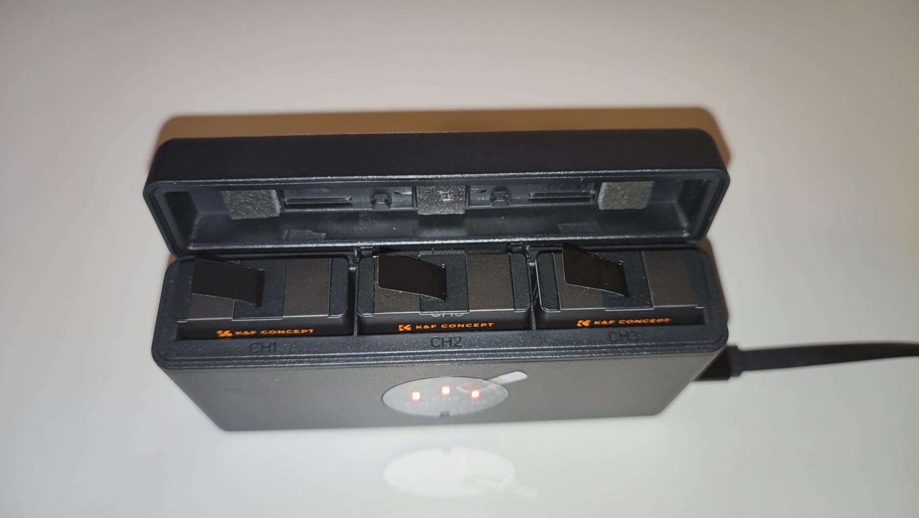 Le batterie funzionano bene e sono riuscito a ottenere più di 2 ore di registrazione. È ancora una fase iniziale di test, quindi ho qualche dubbio sulla capacità della batteria nel tempo rispetto all'OEM, ma appena tolte dalla scatola funzionano bene. L'ho collegato a un caricabatterie PD e sono riuscito a ottenere solo circa 10 W di picco di carica. Non è il caricabatterie più veloce durante la ricarica delle tre batterie. È una soluzione comoda e sottile per trasportare tre batterie e mantenerle cariche. Ha le dimensioni di un power bank standard da 10.000 mAh.