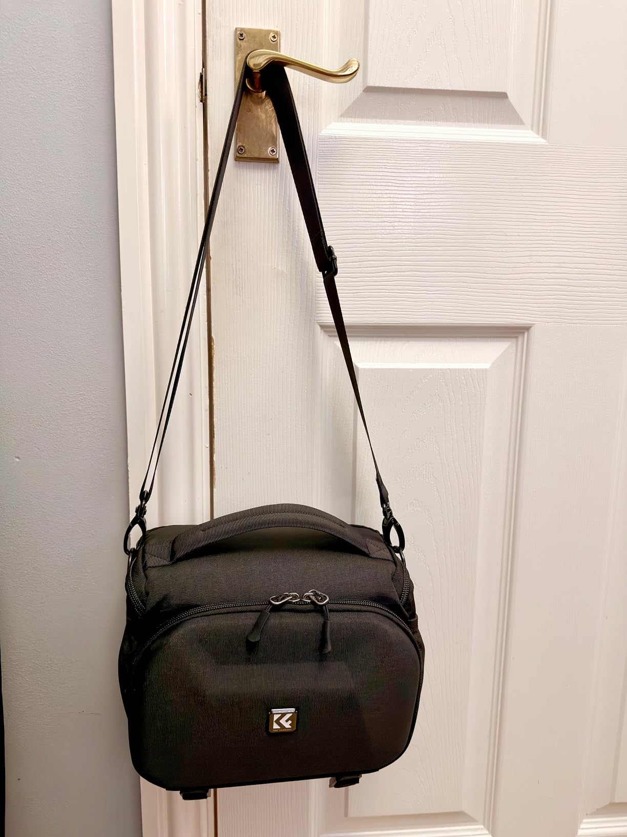 Questa è la mia prima custodia rigida per fotocamera. Protezione perfetta. Ha tasche interne per schede di memoria e batterie. Tuttavia, la custodia è molto piccola. Può contenere solo la mia Sony 7R5 con un obiettivo corto, ovvero il 90 mm. È pubblicizzata come piccola, quindi non ho tolto una stella. Mi piace che la tracolla sia regolabile e multifunzionale. Può essere a tracolla o a tracolla.