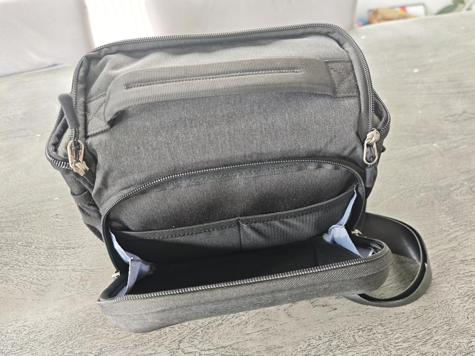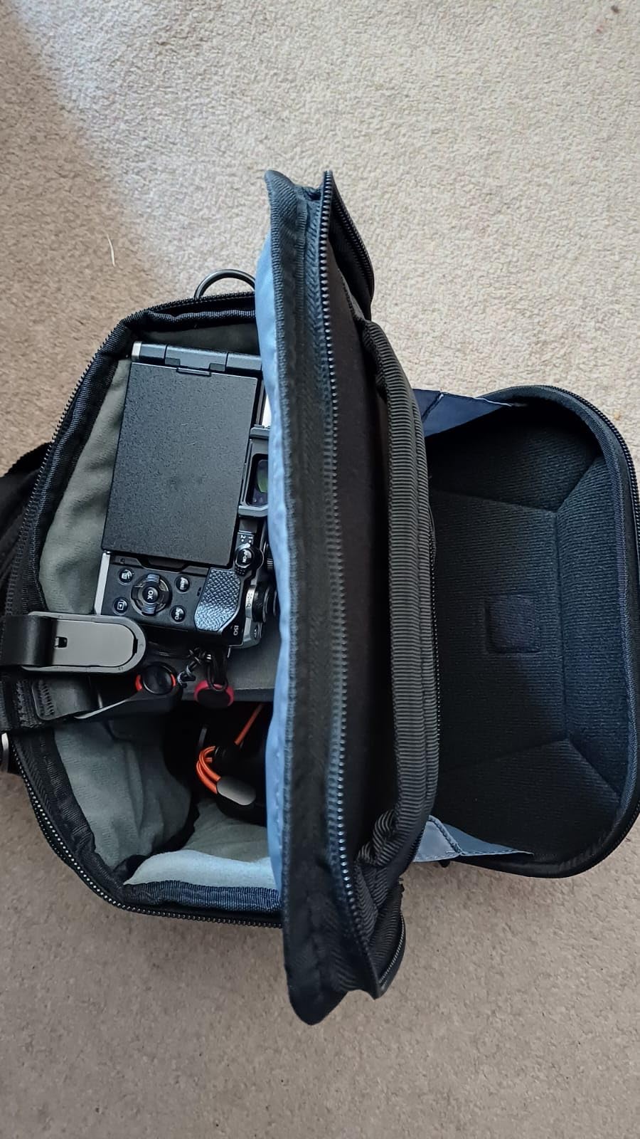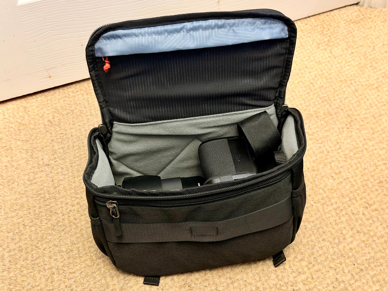 Non è una borsa enorme, ma può contenere comodamente la mia Lumix S5IIX con zoom 24-105 e spazio aggiuntivo per alcuni accessori, quindi è l'ideale per una giornata fuori con macchina fotografica e zoom, oltre a filtri, batterie di ricambio, chiavi e portafoglio. La parte anteriore della borsa ha una superficie imbottita molto robusta che protegge bene da tutti gli urti tranne quelli più forti, e può essere aperta con una cerniera per rivelare uno spazio per gli accessori. C'è anche uno scomparto segreto con cerniera sul retro della borsa, una maniglia robusta, cinghie per treppiede e una tracolla discretamente capiente. È disponibile in due misure e io ho ordinato la media. Le cerniere sono buone e scorrevoli, e il materiale interno sembra resistente senza essere abrasivo. Sono fondamentalmente colpito dalla qualità dei materiali e dalla robustezza della costruzione in una borsa piccola ed economica.