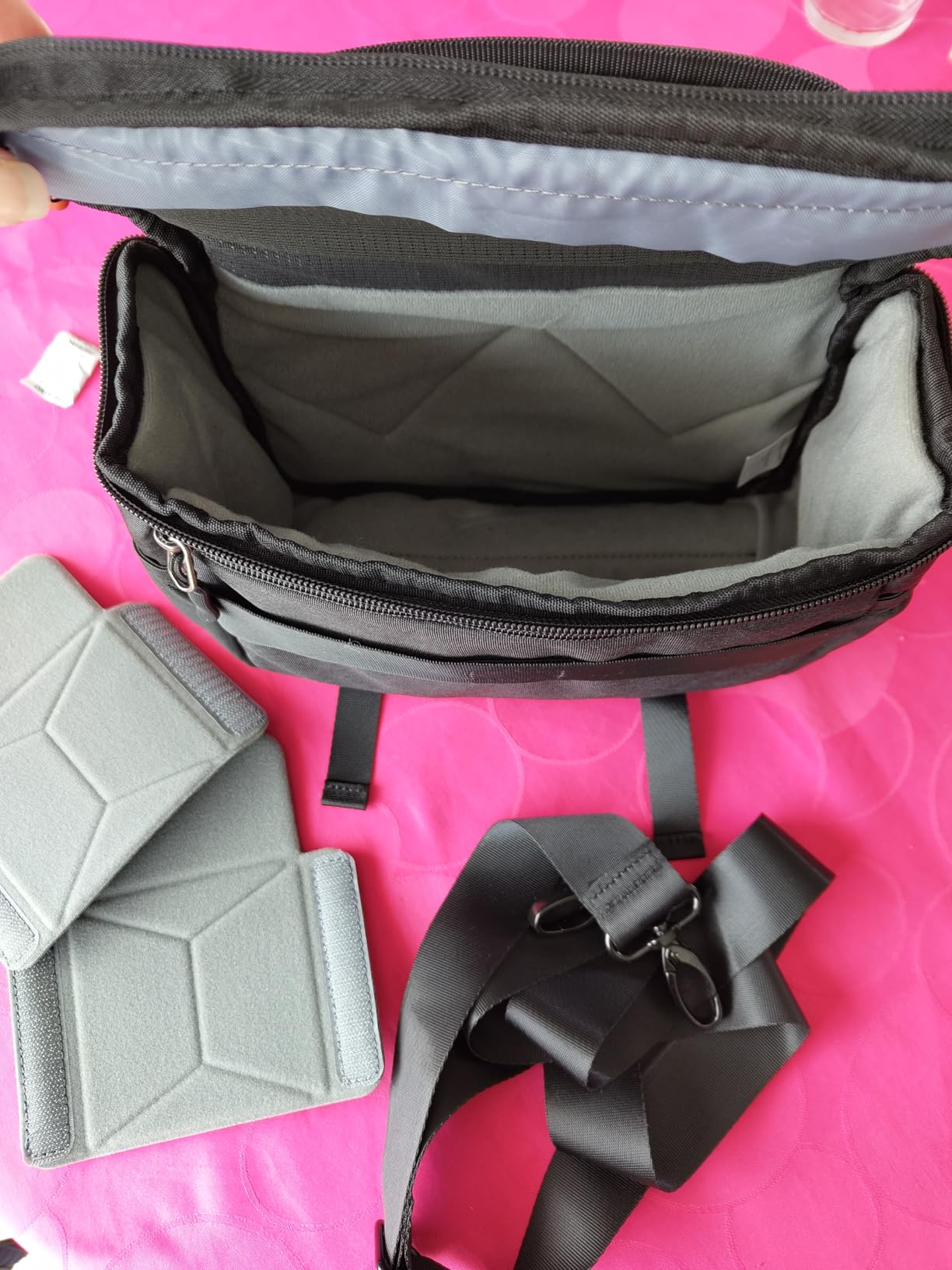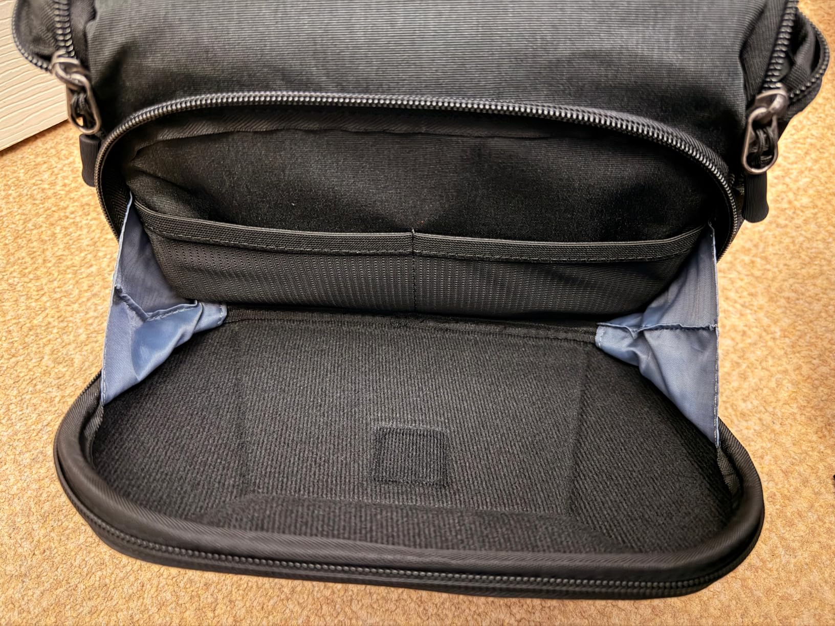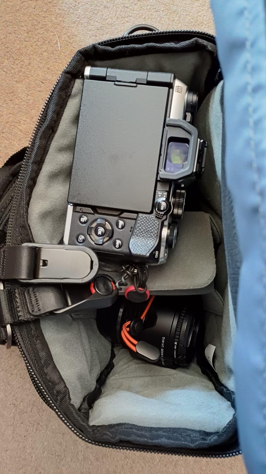 Non è una borsa enorme, ma può contenere comodamente la mia Lumix S5IIX con zoom 24-105 e spazio aggiuntivo per alcuni accessori, quindi è l'ideale per una giornata fuori con macchina fotografica e zoom, oltre a filtri, batterie di ricambio, chiavi e portafoglio. La parte anteriore della borsa ha una superficie imbottita molto robusta che protegge bene da tutti gli urti tranne quelli più forti, e può essere aperta con una cerniera per rivelare uno spazio per gli accessori. C'è anche uno scomparto segreto con cerniera sul retro della borsa, una maniglia robusta, cinghie per treppiede e una tracolla discretamente capiente. È disponibile in due misure e io ho ordinato la media. Le cerniere sono buone e scorrevoli, e il materiale interno sembra resistente senza essere abrasivo. Sono fondamentalmente colpito dalla qualità dei materiali e dalla robustezza della costruzione in una borsa piccola ed economica.