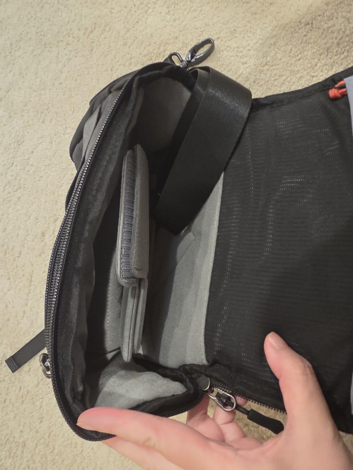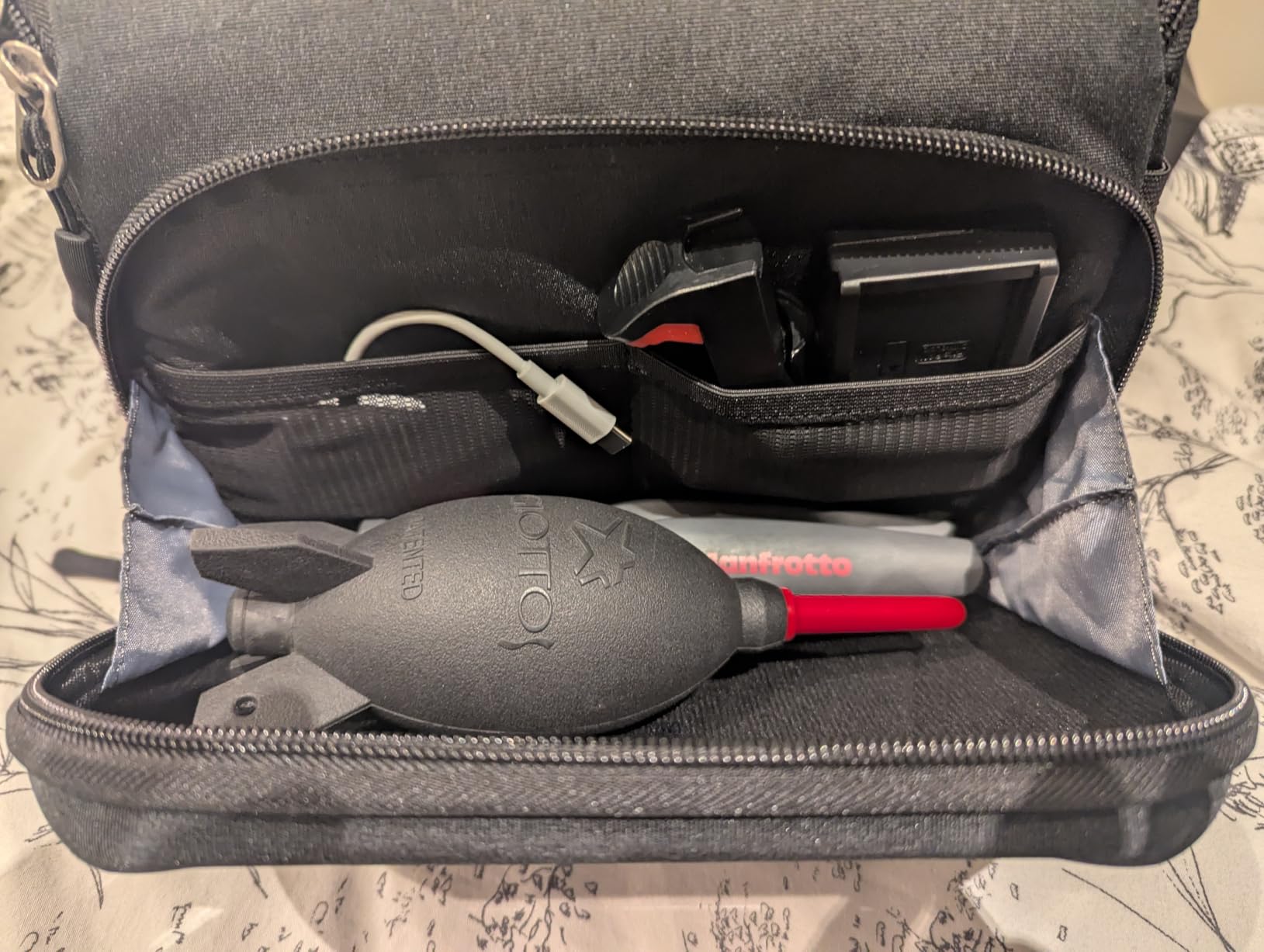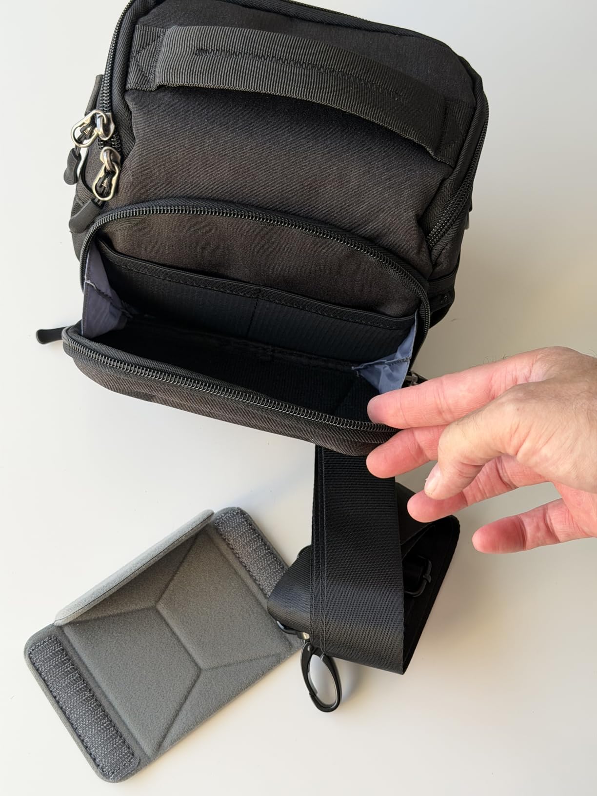 Una fantastica borsa fotografica, perfetta per le fotocamere X100 o qualsiasi compatta. Funziona anche per una mirrorless, soprattutto se si rimuove l'obiettivo. Avevo una borsa più piccola che conteneva a malapena la mia X100VI, ma è così piccola che non si può portare altro. Questa borsa può contenere facilmente la fotocamera, le batterie, gli AirPods, un telefono, un lettore di schede, una scheda di riserva e altro ancora. La tasca anteriore è in materiale rinforzato (rigido) per proteggere qualsiasi cosa ci sia al suo interno. La tasca principale è ben imbottita, quindi mi fido della mia fotocamera. All'interno del coperchio c'è una tasca a rete con cerniera dove tengo il lettore di schede e una scheda di riserva. Poi c'è un'altra tasca con cerniera sul retro che potrebbe essere perfetta per contanti/carte/qualsiasi oggetto piatto. Sotto ci sono delle cinghie regolabili per un treppiede o una giacca. Una borsa fantastica, non molto più grande della fotocamera, ma che contiene molto.