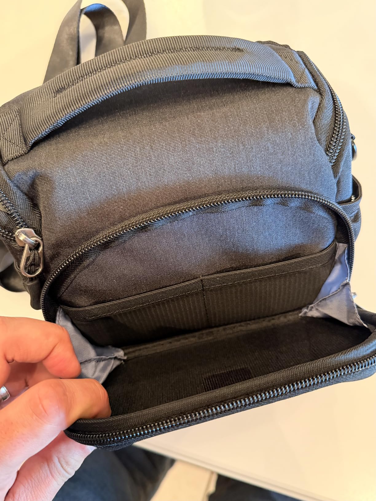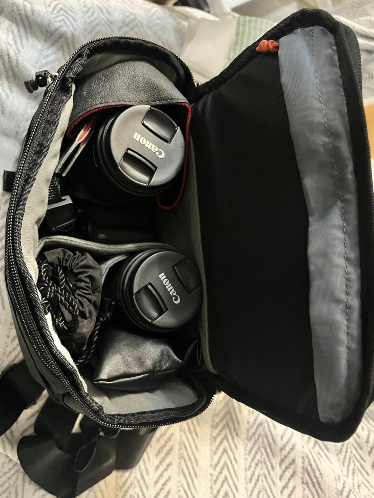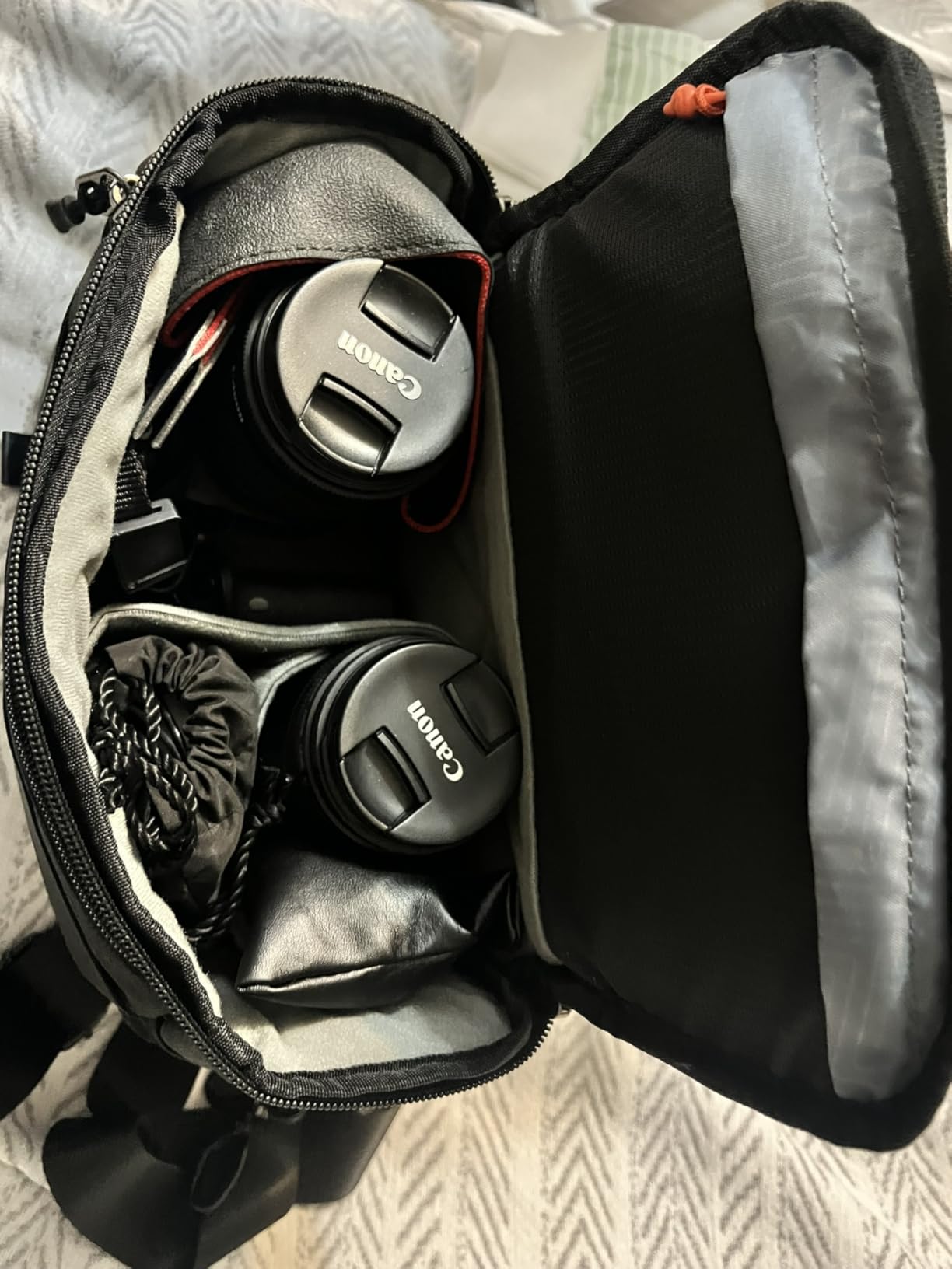 Sono ossessionata da questa borsa a tracolla per fotocamera! Contiene molto più di quanto sembri! Onestamente, sembra quasi magico come tutto si adatti perfettamente e sembri comunque organizzato. Gli scomparti sono ben pensati e la parte anteriore rigida offre un'ottima protezione per la mia attrezzatura. È comoda da indossare, facile da raggiungere mentre si è in movimento e il materiale impermeabile sembra robusto e di alta qualità. Perfetta per gite di un giorno o scatti veloci. La adoro. 10 STELLE