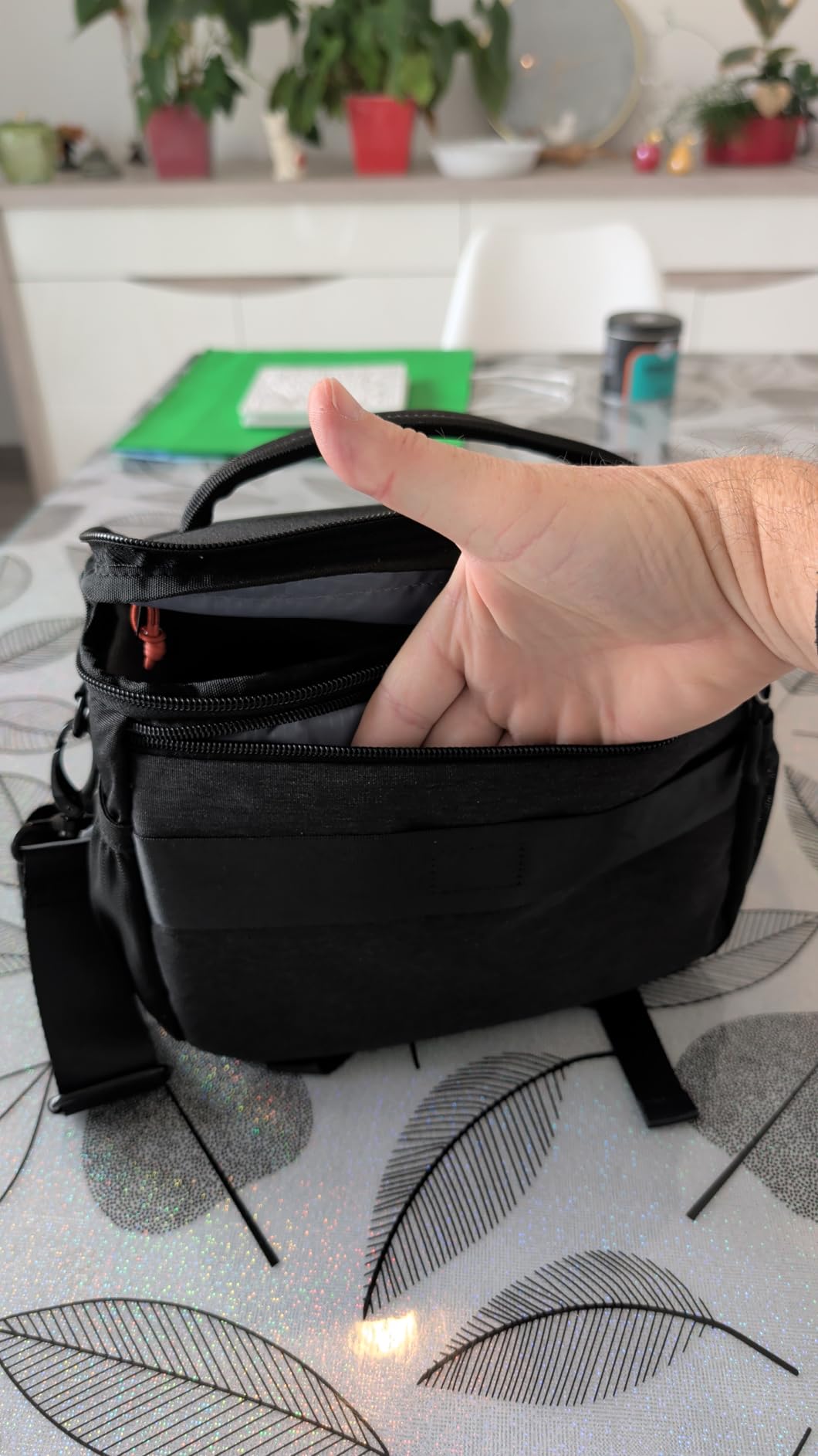 Ottima borsetta per una macchina fotografica o un piccolo drone! È proprio così che l'ho usata! Ho comprato di recente un DJI 5 Mini e ci sta perfettamente dentro! Dentro c'è tutto! La borsa ha diverse tasche interne ed esterne, il che la rende davvero pratica! È inclusa anche una tracolla, così puoi portarla a mano usando la maniglia sulla parte superiore. Un divisorio rimovibile con strisce in velcro permette di separare in due lo scomparto interno principale. La qualità K&F Concept è eccellente a un prezzo così ragionevole. La consiglio vivamente!