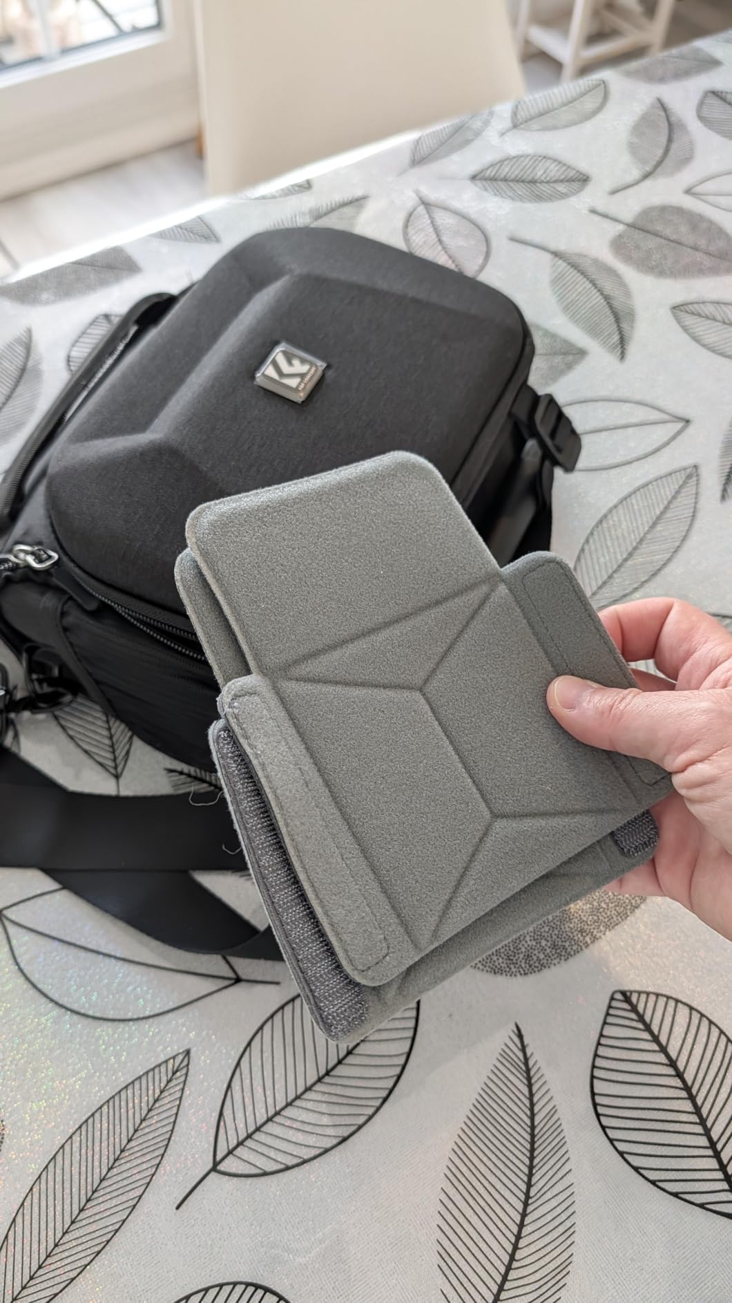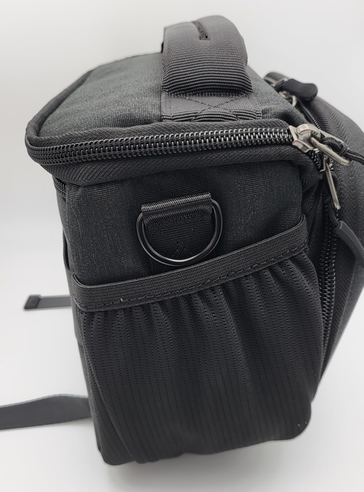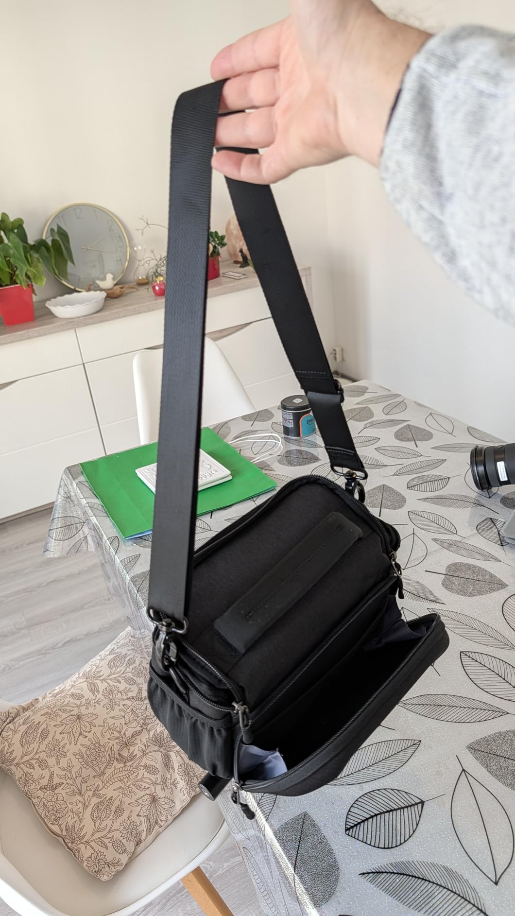 A prima vista, questa borsa fotografica si nota per la sua buona qualità. Il rivestimento esterno è realizzato in un robusto materiale impermeabile e risulta molto robusto. Le cuciture della tracolla staccabile sono strette e realizzate alla perfezione, e i passanti in metallo garantiscono una lunga durata. L'interno è interamente rivestito in feltro per evitare che gli oggetti si graffino quando sono al suo interno. Sono presenti inserti in velcro alle estremità che consentono di creare aree personalizzate all'interno della borsa per adattarle perfettamente a oggetti di diverse dimensioni. L'interno del coperchio presenta uno scomparto con cerniera in cui riporre batterie e accessori. La lunga cinghia lungo il pannello posteriore della borsa è perfetta da infilare sulla maniglia del bagaglio quando si viaggia e, una volta utilizzata, non la si troverà più in nessun'altra borsa. Ci sono numerosi scomparti, di cui quello principale al centro con una cerniera avvolgente. Questo è rapido da raggiungere se si ha bisogno della fotocamera in fretta e il coperchio si solleva verso l'alto, consentendo di accedere completamente al contenuto. Sul davanti c'è un altro scomparto con cerniera, la cui patta si abbassa in avanti una volta aperta, consentendo un facile accesso al contenuto. Questo scomparto è sottile, ma la patta anteriore è in EVA rigido, quindi protegge il contenuto. IN questo scomparto ci sono due tasche elastiche. Ci sono tasche elastiche su entrambi i lati della borsa, ma queste non hanno nulla per fissare il contenuto all'interno, tranne la fascia elastica nella parte superiore. C'è un altro scomparto sottile sul pannello posteriore, all'esterno, che si chiude con una cerniera. È piuttosto stretto, quindi ideale per documenti o simili. Ci sono due cinghie sul fondo che permettono di riporre un piccolo treppiede se necessario, cosa che apprezzo molto. Questa borsa è progettata per trasportare l'essenziale e non è progettata per trasportare tutto. Se si trasportano batterie più grandi o accessori ingombranti, questa sarà troppo piccola. È ideale per le giornate fuori quando si ha bisogno solo dell'attrezzatura essenziale. La borsa è ben pensata per progetti fotografici più piccoli e non si distingue per essere una borsa fotografica, cosa che apprezzo. Contiene anche il mio piccolo drone e i suoi accessori, quindi può essere utilizzata in diversi modi, a seconda delle mie esigenze. Non posso proprio trovare difetti in questa borsa.