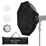 Softbox ottagonale K&F CONCEPT da 90 cm, attacco Bowens standard, include rete a nido d'ape, telo diffusore e sacca di trasporto con coulisse. Compatibile con tutte le luci di riempimento, flash da studio, ecc. con attacco Bowens standard.