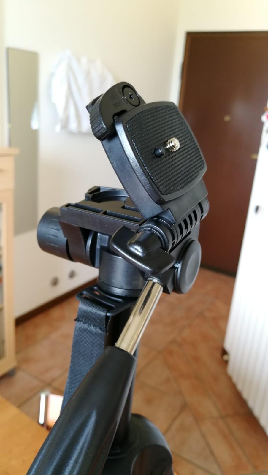 La testa è comoda e ben costruita anche se con materiali plastici e in dotazione si ha anche l’attacco per smartphone.